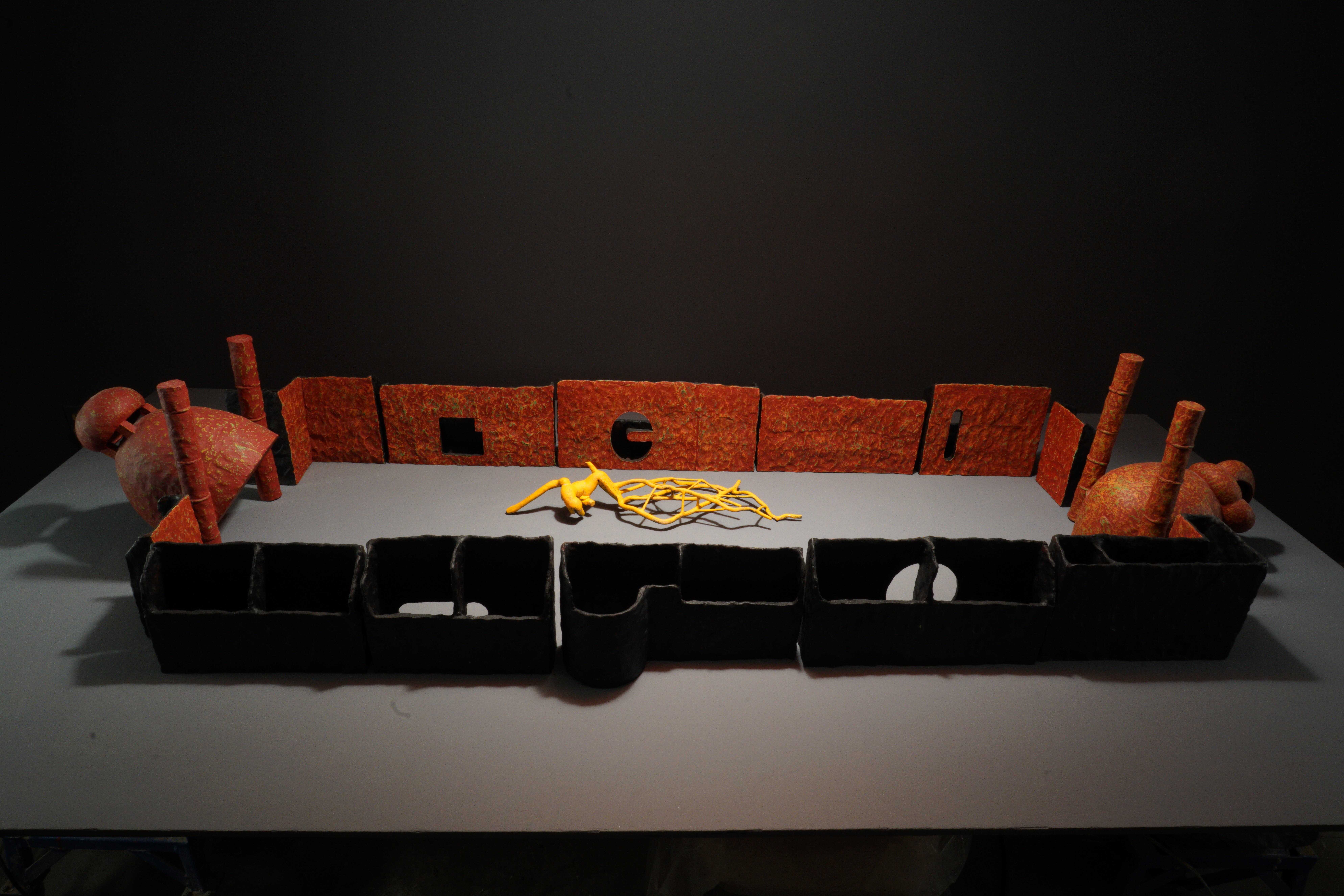a contemporary ceramic installation by Julian Covey, Neil Forrest, and Krista Grunsky